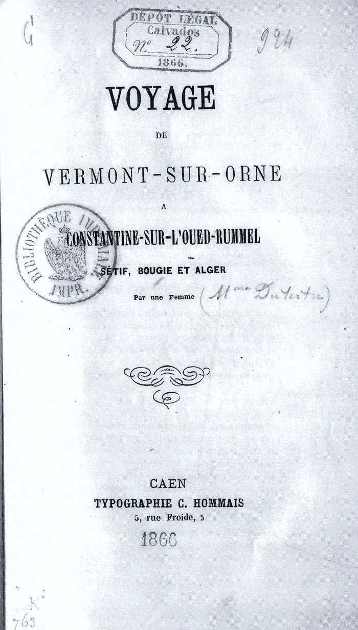 Voyage de Vermont-sur-Orne à Constantine sur l’Oued-Rummel, Sétif, Bougie et Alger, par une femme