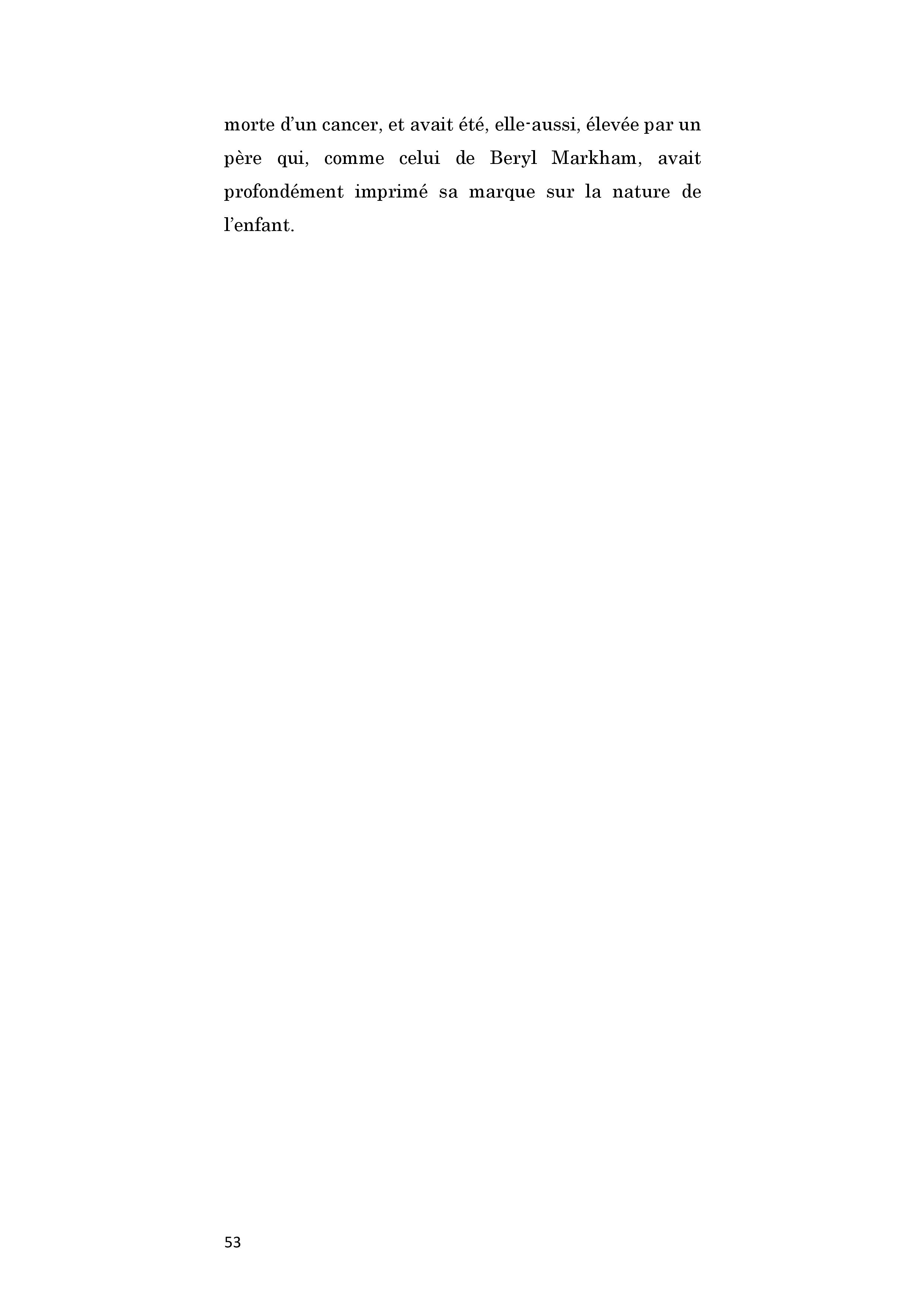 Grande aventurière, Beryl Markham, est la première aviatrice à traverser l'Atlantique seule d'Est en Ouest, en 1936. Après cet exploit, elle s'installe quelques temps aux Etats-Unis. Salué par Hemingway, Vers l'Ouest avec la nuit est publié en 1942. Mais l'ouvrage, écrit en vérité par son troisième mari, ne rencontre pas son public. Elle retourne au Kenya en 1952 et au milieu de l'équitation, sans grand succès financier, sombrant dans la misère et l'alcool. C'est une seconde édition de son ouvrage, au début des années 80, qui lui permet d'améliorer les conditions matérielles de sa vieillesse. Elle meurt à l'âge de 84 ans.