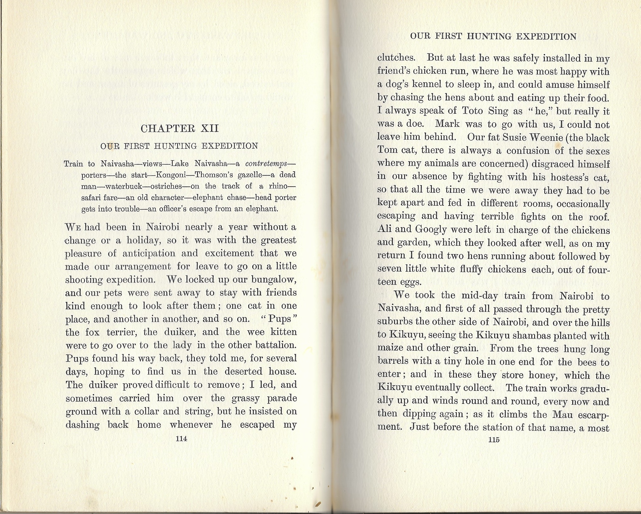 Britannique. Elle part avec son mari officier en Afrique orientale britannique où elle séjourne entre 1905 et 1906. Elle publie quatre ans après un livre rendant compte de la vie quotidienne des colons et des Africains en relevant la variation des usages selon les ethnies. Elle participe activement aux parties de chasse de son mari, s’enthousiasme de ses nombreuses mises à mort sans pour autant appuyer elle-même sur la gâchette.