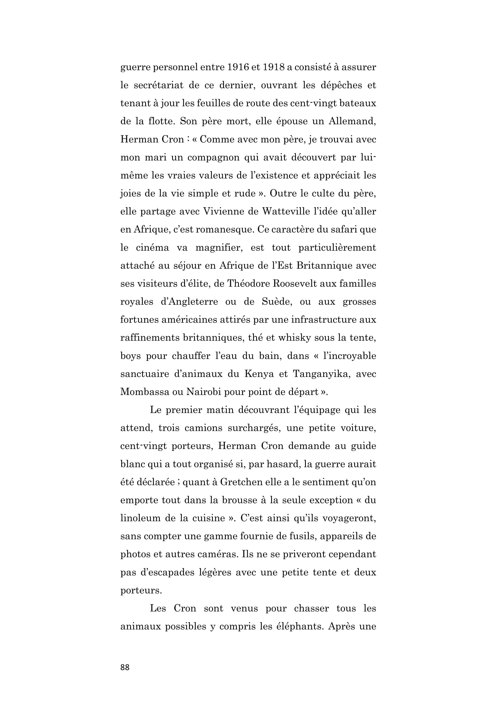 Riche Américaine et fille d’un président de compagnie maritime dont la carrière lui permet de financer quatre safaris de grands moyens entre 1921 et 1924 en Afrique de L’Est. Elle est l'image même de la chasseuse coloniale avide de trophées.