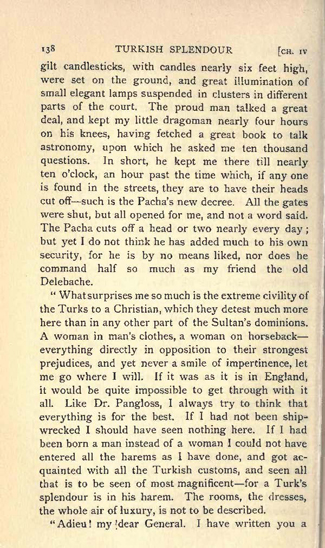 Britannique. Grande aristocrate dont le séjour en Orient, commencé dans les fastes, se termine dans l'abandon et la misère. Elle a laissé des documents utilisés pour sa biographe.