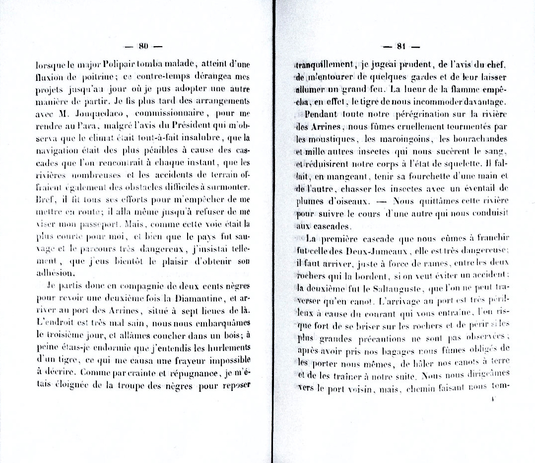 Alexandrine Lenglet (ou Langlet), née à St Jean d'Angely, se marie à dix-sept ans à un huissier, Alexandre Dufreynois, de Melle (Deux-Sèvres) qui ne rêve que d'aventure. La voilà donc partie pour quinze ans au Brésil où ils chercheront par tous les moyens à faire fortune y compris par le trafic d’esclaves ou la recherche de diamants. Il trouve la mort au cours du voyage et elle met des années à gagner l'argent de son retour, auprès de sa famille à Blaye en 1852.