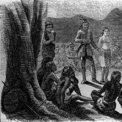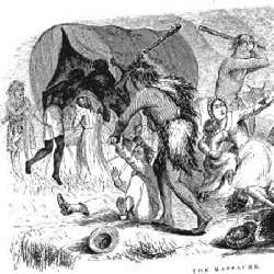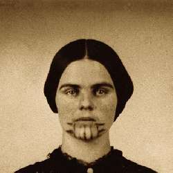 En 1851 la famille Oatman, d’obédience mormone, traverse l’Arizona en quête de la terre promise. Ils sont attaqués par les Indiens Yavapai. Les parents et quatre des sept enfants sont tués. Deux sœurs, Olive et Mary Ann, âgées de 7 et 13 ans, sont emmenées en captivité. Rendues en esclavage et malmenés, elles sont ensuite revendues à des Mohaves et bien traitées. En 1856, Olive et rachetée par son gouvernement. Elle apparaît sur les photos le bas du visage lourdement tatoué.