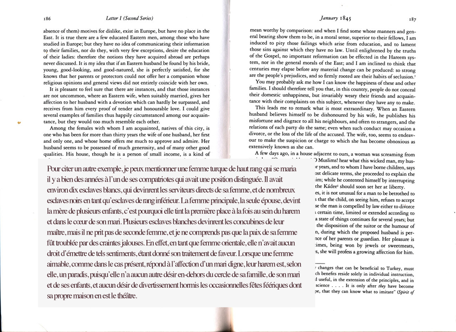 Britannique. Soeur d'un grand arabisant, épouse d'un clergyman, elle s'immerge dans la culture orientale dont elle n'ose trop désapprouver certains aspects comme le sort fait aux femmes.