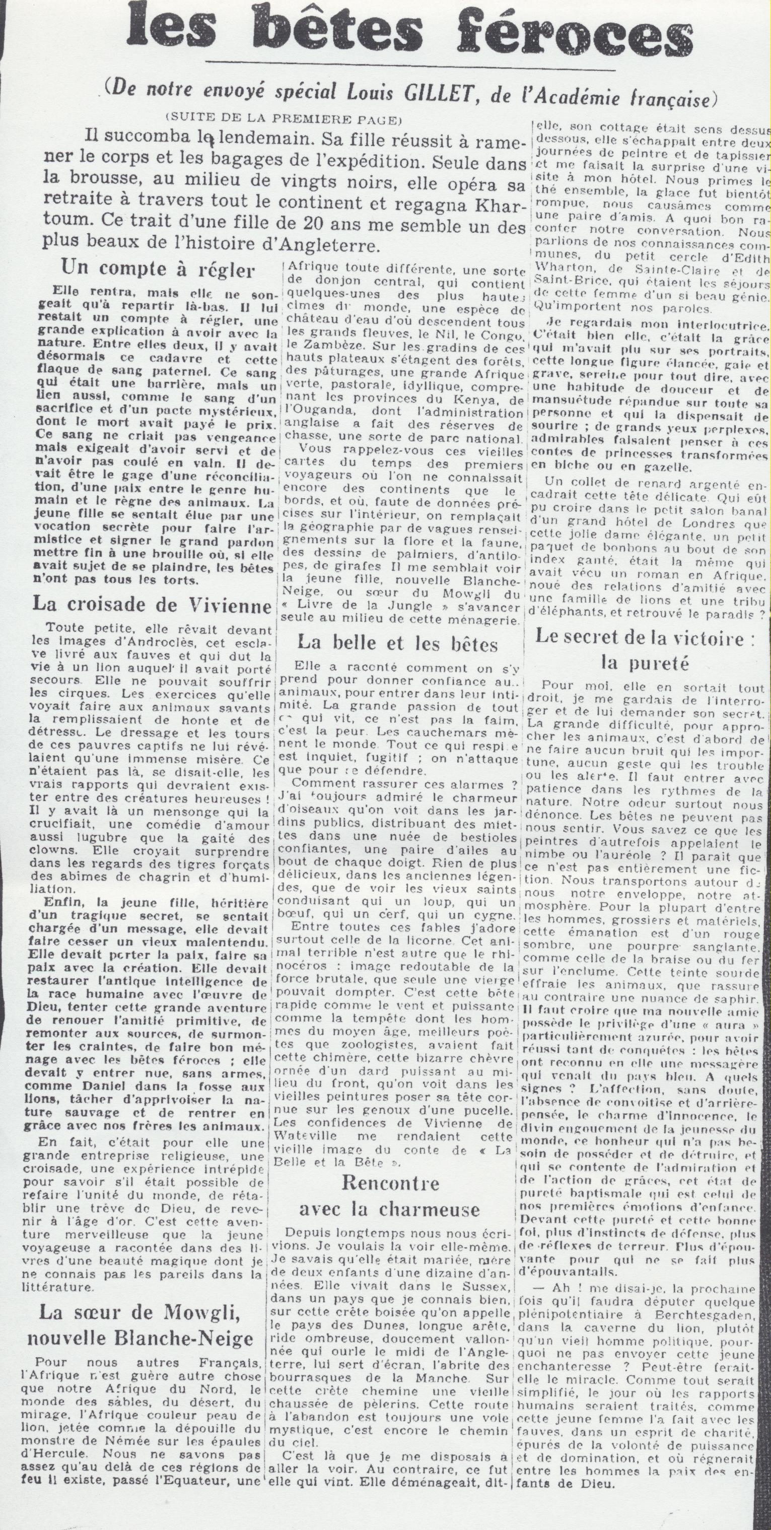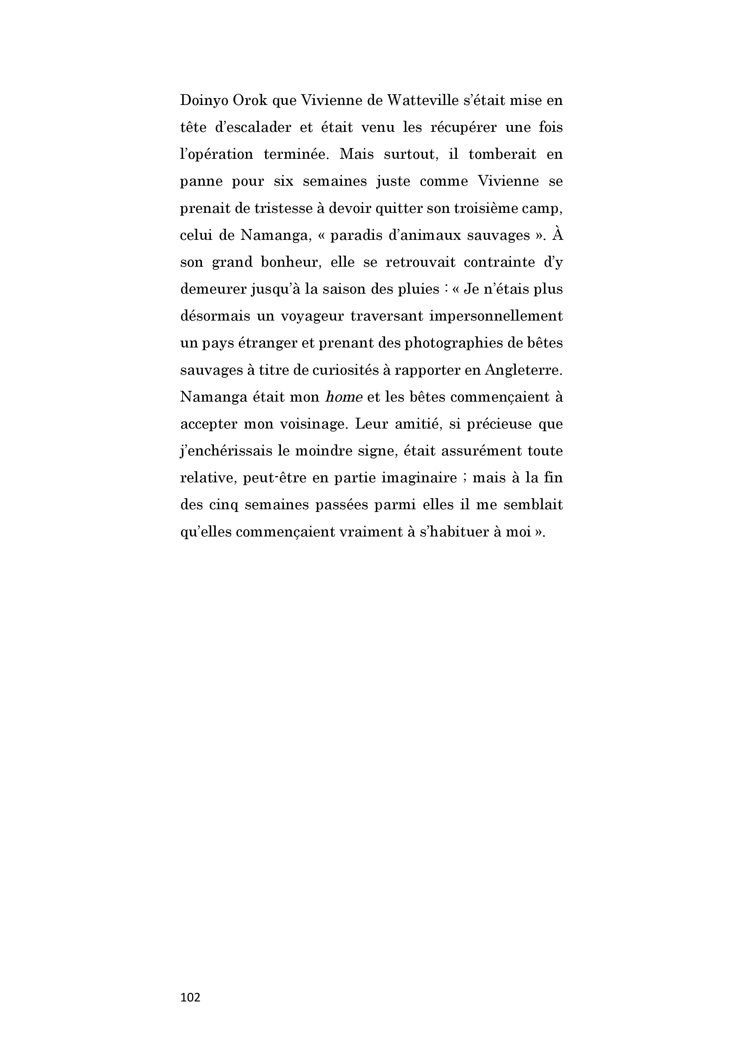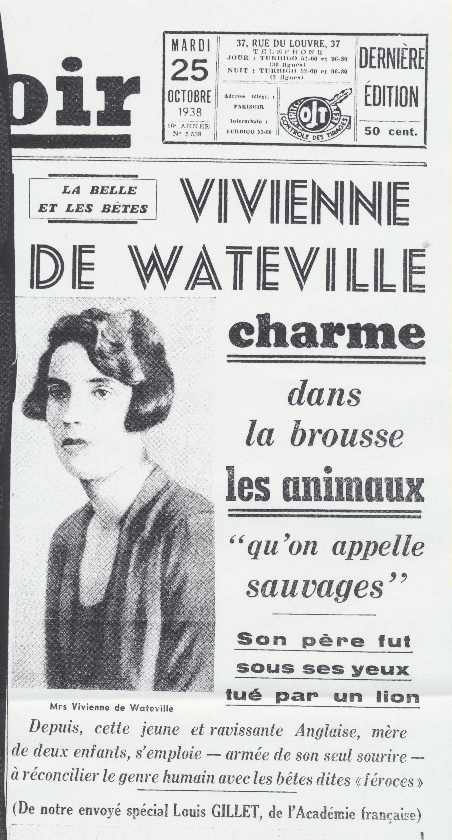 Britannique. Orpheline de mère à neuf ans, elle arrive avec son père en Afrique de l’Est en 1926 alors qu’elle n’est encore qu’une jeune fille. Naturaliste, Bernard de Watteville tue des dizaines d’animaux pour le musée de Berne. Vivienne aime le seconder et pratique méthodiquement le dépeçage préparant le travail des taxidermistes suisses. Ils se déplacent à pied avec leurs boys et leur équipement, suivant le gibier, et vivent de longues semaines exclusivement dans la brousse, dormant sous les tentes, entourés des fauves, subissant les intempéries et les maladies tropicales. C'est de près d’une centaine de spécimens qu'ils vont doter les dioramas du musée de Berne. Vivienne s'éprend profondément de l'Afrique. Le 30 septembre 1924, Bernard de Watteville est tué par un lion. Elle reprend l'expédition en mains et tue le rhinocéros blanc qui manquait à la liste. De retour en Europe, préparant son voyage suivant, elle publie Out in the Blue, récit détaillé de la mise à mort des fauves et de leur dépeçage. Cependant, la chasse est définitivement derrière elle et, lors de son second séjour au Kenya, en 1928-1930, elle s’installe dans une réserve, au milieu des animaux pour mieux les observer, les photographier et les filmer. Bonne alpiniste, elle entreprend aussi l’ascension du Mont Kenya. De cette période, un second livre paraît, Speak to the Earth, publié en France en deux volumes : Un thé chez les éléphants, et Petite musique de chambre sur le Mont Kenya, montrant son rapport à la nature et aux animaux désormais apaisé. Un séjour sur l’île de Port-Cros lui inspirera Seeds that the wind may bring, publié après sa mort, d'un cancer, alors qu'elle avait 57 ans.