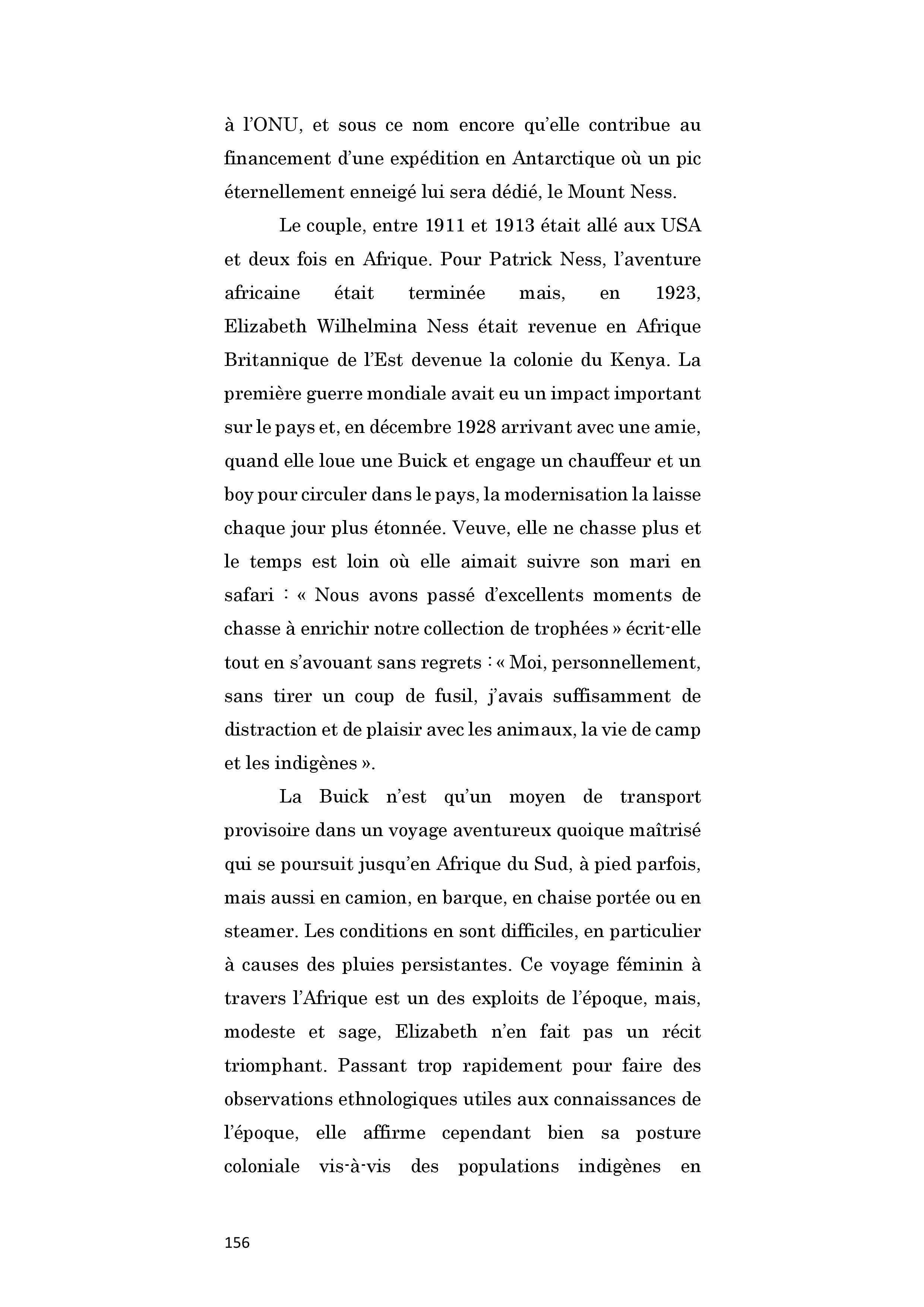 Cette Anglo-américaine fait avant la Première Guerre mondiale un premier voyage en Afrique en compagnie de son mari chasseur. Jeune veuve, elle reprendra ses expéditions en Afrique, mais ne pratiquera plus la chasse. En 1927, accompagnée d’une amie, elle voyage en Buick jusqu’en Afrique du Sud observant la modernisation de l'Afrique de l'Est. En mémoire de son mari, elle créée le prix "Ness" accordé chaque année par la Royal Geographical Society à un voyageur.